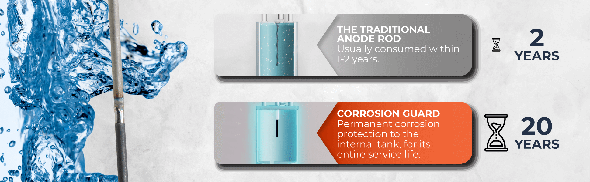 Corrosiebewaker, gemaakt van titaniummateriaal van hoge kwaliteit, laat geen restproduct achter in uw boiler. Het stopt de corrosie binnen 24 uur en wordt geleverd met een garantie van 20 jaar om u extra beveiliging te geven. Maar dat is niet alles.